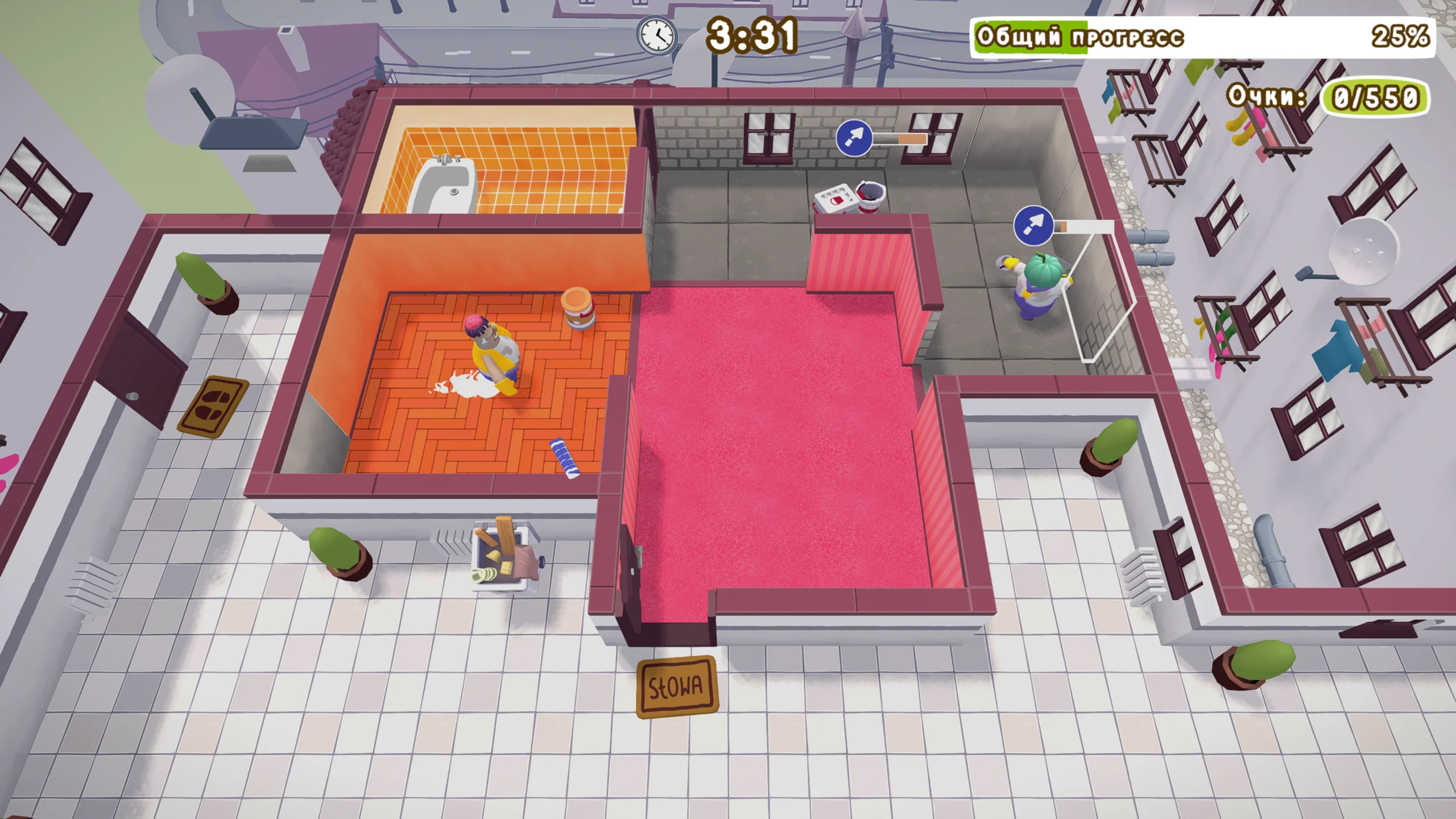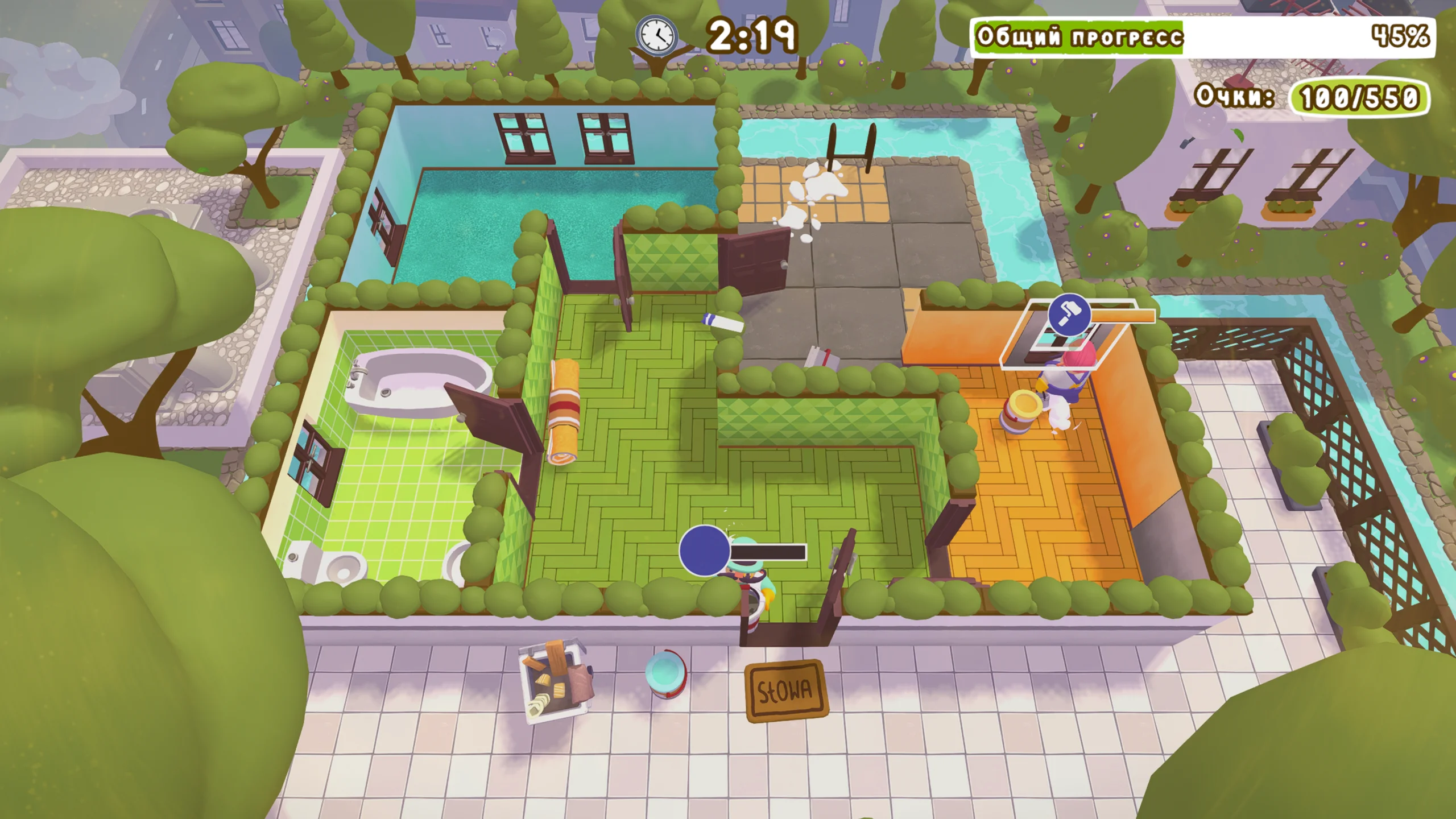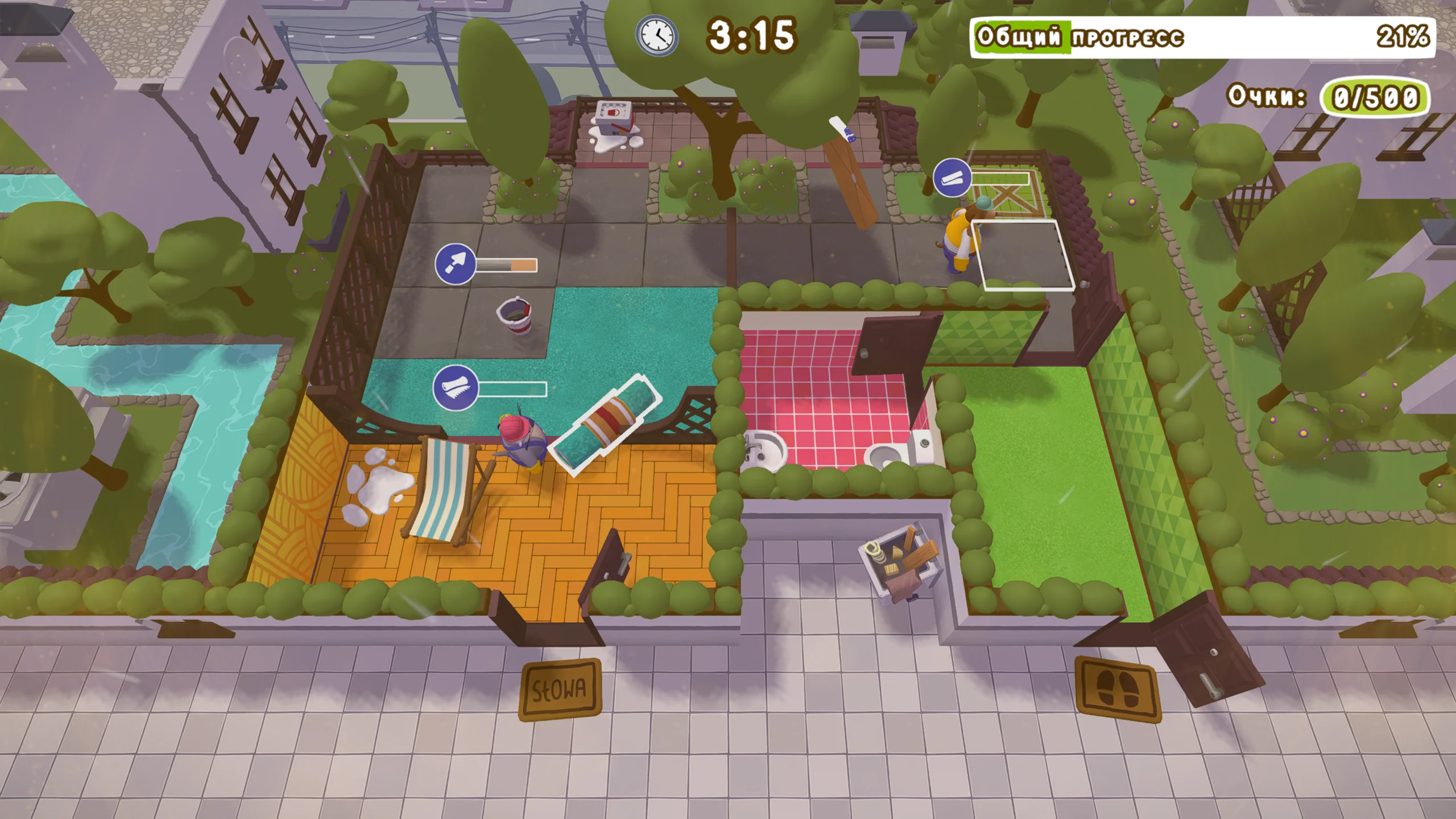 Tools Up! Ultimate Edition — это кооперативная аркада с элементами симулятора ремонта, созданная студией The Knights of Unity и изданная Untold Tales. Версия для Nintendo Switch вышла 5 января 2024 года и представляет собой полное собрание оригинальной Tools Up! со всеми патчами и DLC. Игра делает упор на динамичную командную работу и ироничную подачу бытовых ремонтных задач. Линейного сюжета здесь нет: основа — набор миссий по ремонту и обустройству жилых пространств. Игроки управляют разношёрстной бригадой, которую ждут покраска стен, укладка плитки, перестановка мебели и уборка мусора. Каждый уровень — это отдельное жильё со своей планировкой и особенностями, а по мере прохождения требования «заказчиков» растут, усложняя процесс. Геймплей строится на кооперации и тайм-менеджменте. Поддерживается локальный кооператив до четырёх человек на одной консоли: участники распределяют роли и стараются уложиться в отведённое время. Есть и соревновательный режим (PvP), где команды борются за максимальное число выполненных задач за ограниченный период. В Ultimate Edition включены уровни дополнения Garden Party — с заданиями по благоустройству садов, а также новыми механиками и препятствиями. Визуально игра выполнена в ярком мультяшном стиле с насыщенными цветами и комичными персонажами, что подчёркивает лёгкий тон происходящего. Локации разнообразны — от интерьеров до экстерьеров, а музыка и звук усиливают атмосферу суеты и необходимость слаженной командной работы, характерной для «диванных» кооперативов. Оценки у Tools Up! Ultimate Edition смешанные. Критики отмечали, что комплект всех дополнений и наличие соревновательного режима расширяют базовый опыт и делают игру подходящей для семейных и дружеских посиделок на Switch. В то же время отсутствие онлайн-мультиплеера, нарастающий хаос на поздних этапах и требовательное к координации управление стали объектом критики, особенно со стороны менее опытных игроков.