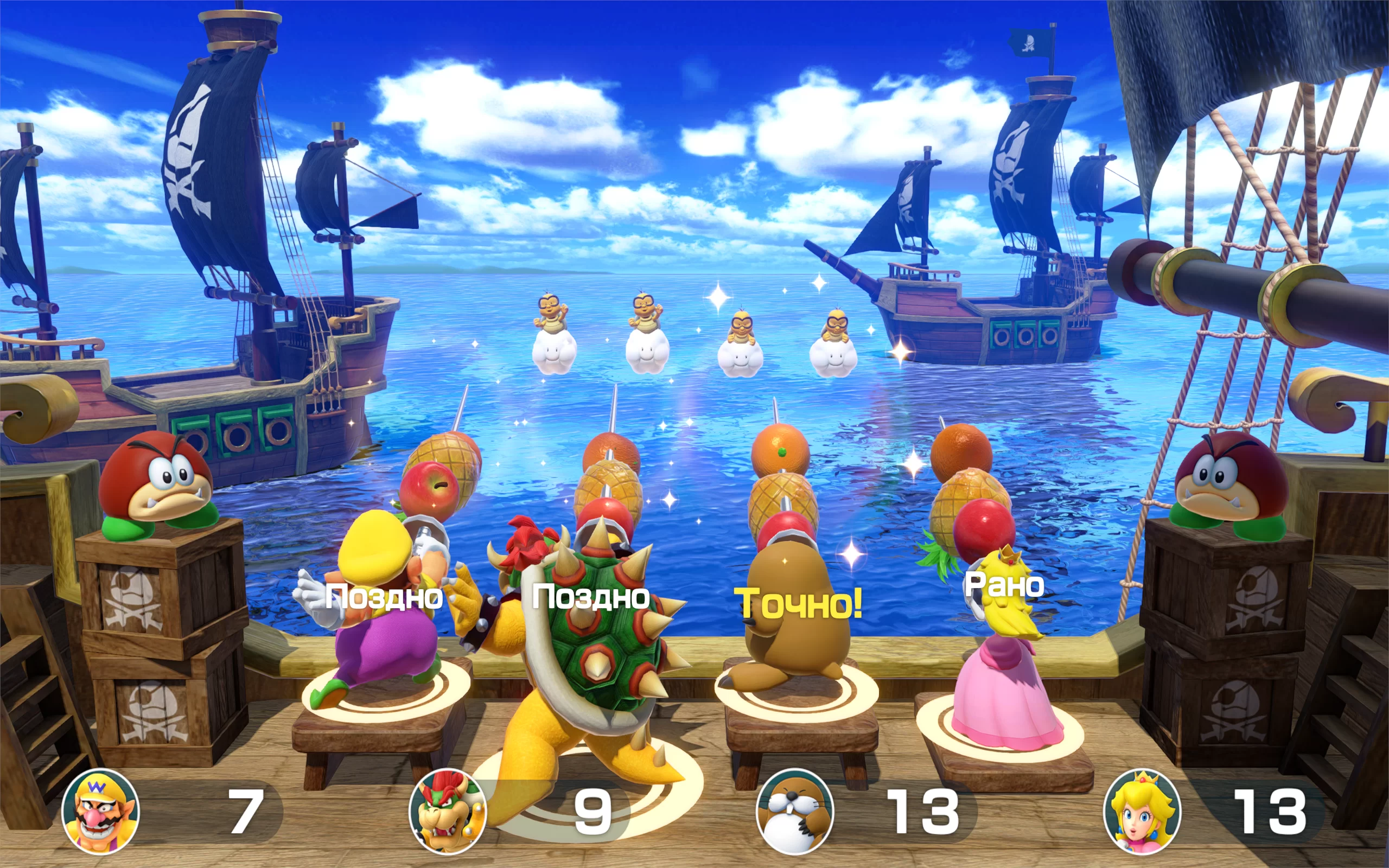 Super Mario Party для Nintendo Switch — праздничная настольная игра для компании, где игроки бросают кубики, передвигаются по тематическим доскам и соревнуются за звезды. Можно играть за знакомых героев вселенной Nintendo — Марио, Луиджи, Принцессу Пич и других — и использовать предметы, тактику и удачу, чтобы обойти соперников. Каждая доска — это яркая локация со своими событиями и маршрутами. Между ходами проходят многочисленные мини-игры: гонки, испытания на ловкость и реакцию, логические задания и другие быстрые соревнования, идеально подходящие для дружеских баталий. Игра поддерживает локальные и онлайн-режимы — можно собираться у одного экрана или играть по сети. Super Mario Party проста для новичков и увлекательна для опытных игроков, дарит атмосферу весёлого соперничества для всей семьи и друзей.